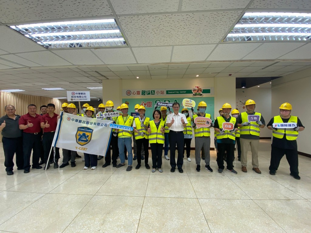此次訓練期間, #台北市消防局許志敏副局長 亦到現場勉勵中華郵政T-CERT成員,平時及災時可就地利用場域內的工具物品,才能與實際情境狀況結合,以發揮實質救援效果。